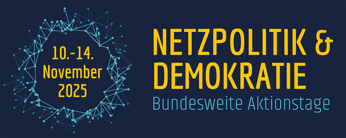 Die Veranstaltungen sind öffentlich und kostenfrei. Detaillierte Informationen zu den Veranstaltungen finden Sie unter www.netzpolitische-bildung.de.