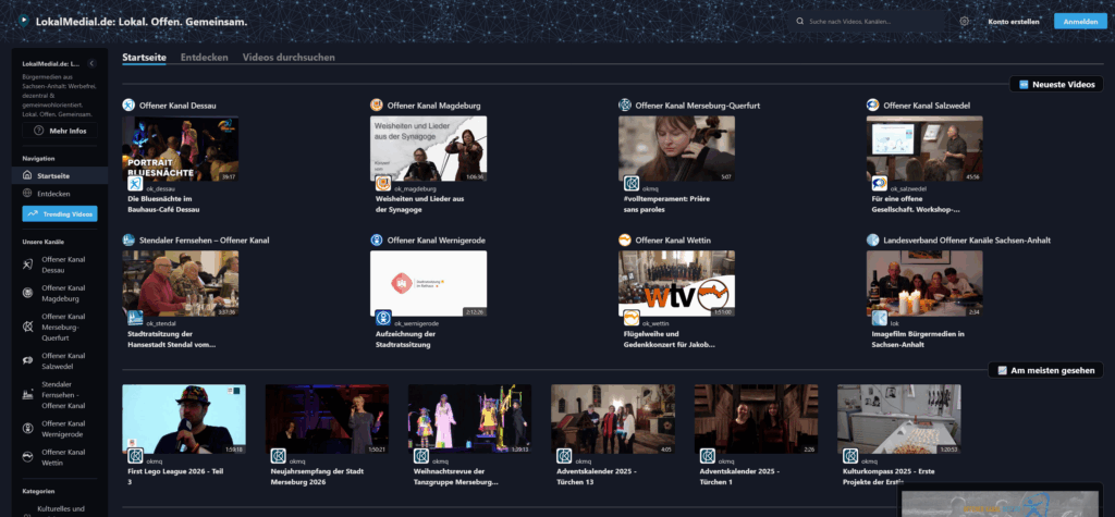 Eine mögliche Antwort darauf entsteht derzeit in Sachsen-Anhalt: Mit lokalmedial.de wächst eine gemeinsame Plattform der Bürgermedien, die Beiträge aus allen sieben Bürgerfernsehsendern des Bundeslandes online zugänglich macht.