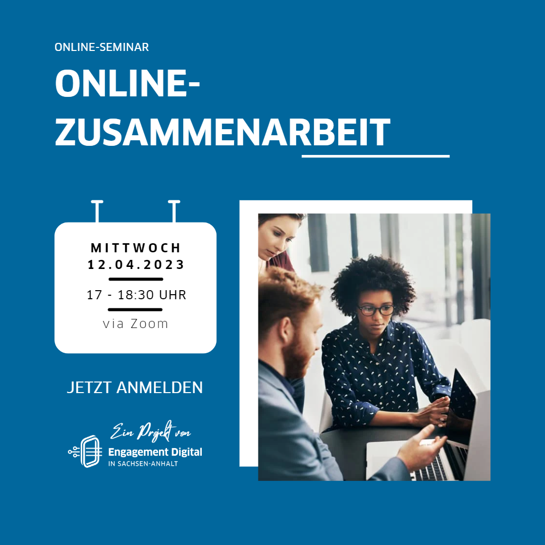 Am Mittwoch, den 12. April von 17:00 bis 18:30 Uhr findet im Rahmen von "Engagement Digital in Sachsen-Anhalt" ein Online-Workshop zum Thema Online-Zusammenarbeit statt. Die Referentin der Digitalen Nachbarschaft Fee Wedepohl wird den Teilnehmenden zeigen, wie sie in Clouds sicher und effizient mit Mitgliedern, Haupt- und Ehrenamtlichen sowie Kooperationspartner*innen zusammenarbeiten können und welche Möglichkeiten der digitalen Zusammenarbeit es noch gibt. Dafür stellt sie nützliche digitale Werkzeuge (Tools) vor und zeigt, was bei deren Auswahl und Nutzung beachtet werden sollte. Der Workshop richtet sich an alle Engagierten, die in einem Team oder Projekt mit anderen zusammenarbeiten und sich über die Risiken und Chancen der digitalen Kollaboration informieren wollen.