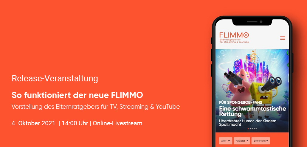 Eine Ampel für die Bewertung, Altersangaben, medienpädagogische Empfehlungen und vieles mehr - der neue FLIMMO wird in der offiziellen Release-Veranstaltung vorgestellt. Pressevertreter*innen, pädagogische Fachkräfte und weitere Interessierte sind herzlich zur Release-Veranstaltung eigeladen.